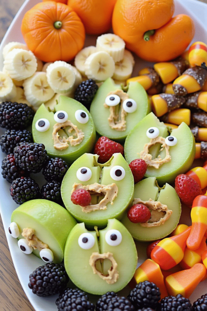- Apple Monster Jaws: Slice green apples, slather with nut butter, and fill with teeth (mini marshmallows or sliced almonds).