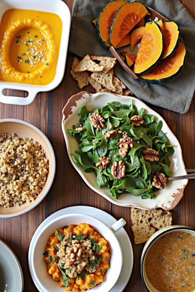 - Stuffed Acorn Squash with Quinoa & Cranberries – Acorn squash halves filled with a hearty quinoa, cranberry, and nut mixture; a comforting, plant-forward meal.