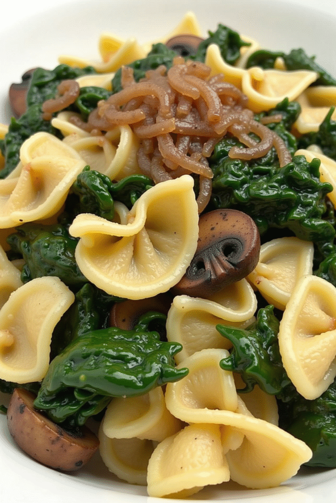 Farfalle Pasta with Spinach, Mushrooms, and Caramelized Onions – A Cozy Holiday Dish
