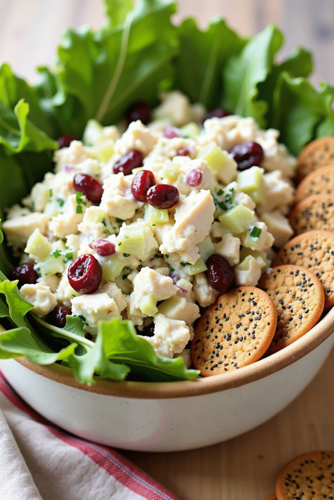 Pair your Fall Chicken Salad with a crusty whole-grain bread or a warm baguette to soak up any leftover dressing. This salad also pairs well with a cozy cup of butternut squash soup or a simple apple cider vinaigrette for lighter fare. Serve chilled or at room temperature for the best flavor.