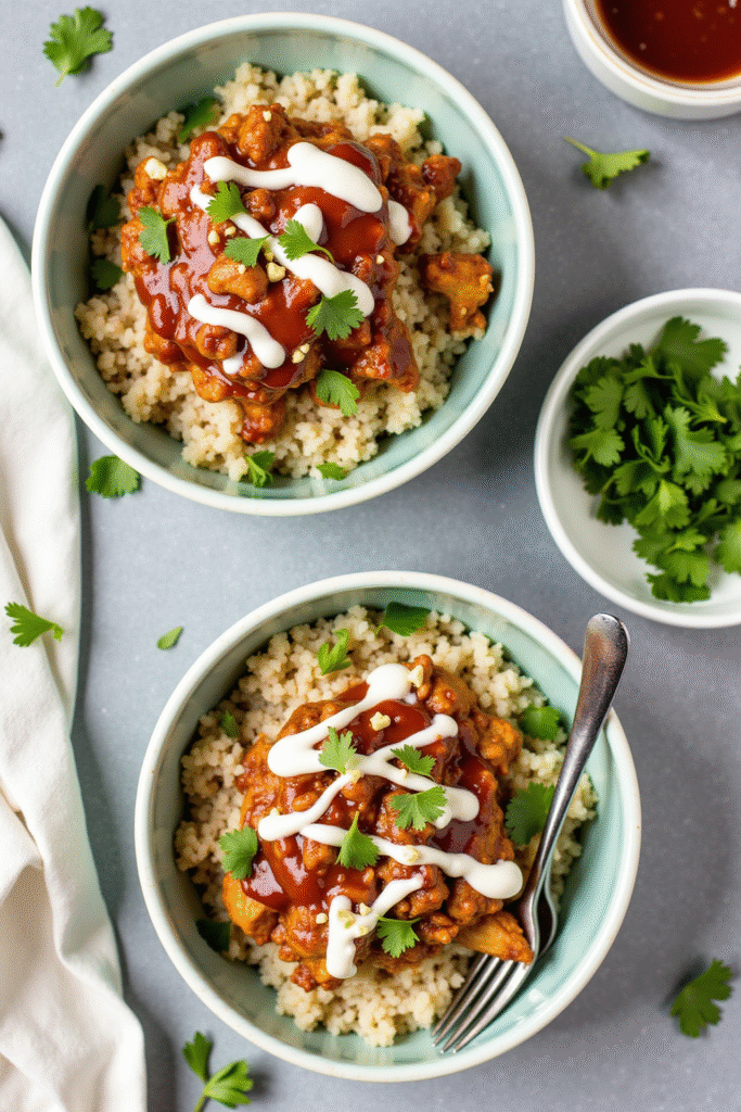 This bowl is a crowd-pleaser because it’s endlessly customizable, macro-friendly, and incredibly tasty. Each serving offers approximately 42 grams of protein, making it an excellent choice for athletes, busy professionals, or anyone who wants to stay energized throughout the day. The classic marriage of tangy BBQ sauce and creamy ranch paired with wholesome veggies and rice transforms lunch into an event you’ll look forward to.