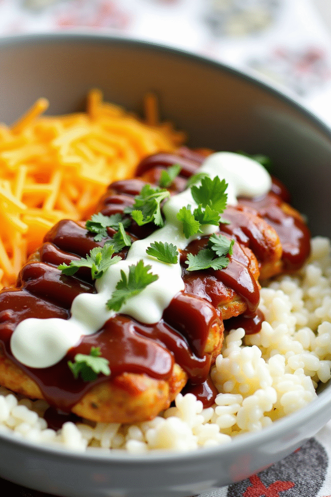 Build your bowl by starting with a warm layer of rice, then pile on seasoned chicken, crunchy veggies, and beans. Finish with a drizzle of BBQ ranch dressing—use Greek yogurt as your creamy base for a lower-fat, high-protein twist. This bowl is fully customizable: add avocado for healthy fats or swap in quinoa for extra fiber.